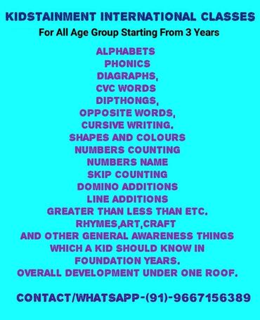 We offer classes for children from all around the world, covering every subject and a wide range of extracurricular activities. Additionally, we provide specialized classes in Hindi, Phonics, Grammar, and Cursive Writing. Our classes are available for students in all time zones, ensuring accessibility for learners globally.